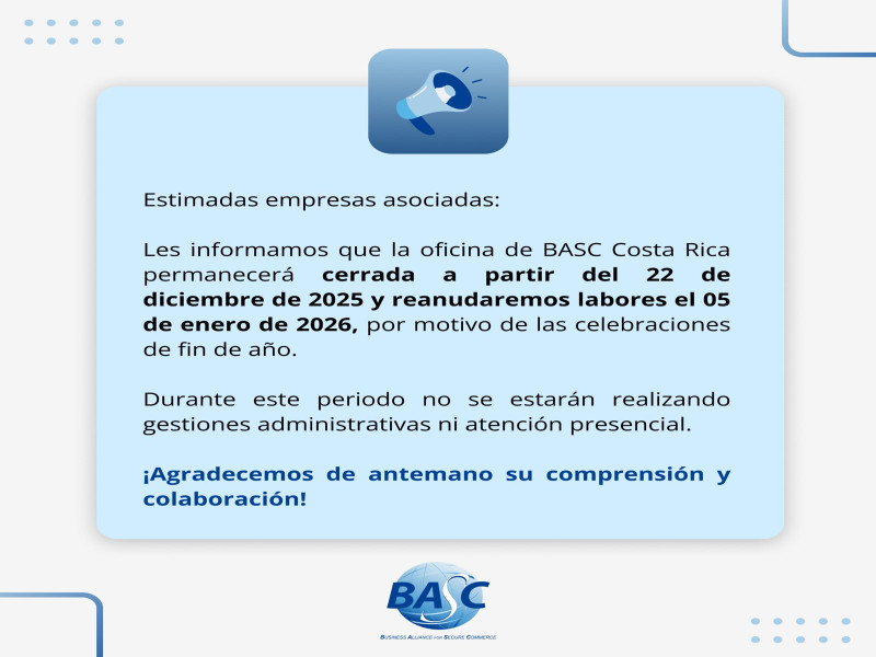 World BASC Organization (WBO) es una organización internacional con la misión de promover y crear una cultura de seguridad entre sus miembros y socios comerciales a fin de facilitar el comercio por medio de la implementación de políticas, procedimientos y prácticas de seguridad sólidas con base en la Norma y Estándares Internacionales de Seguridad BASC.